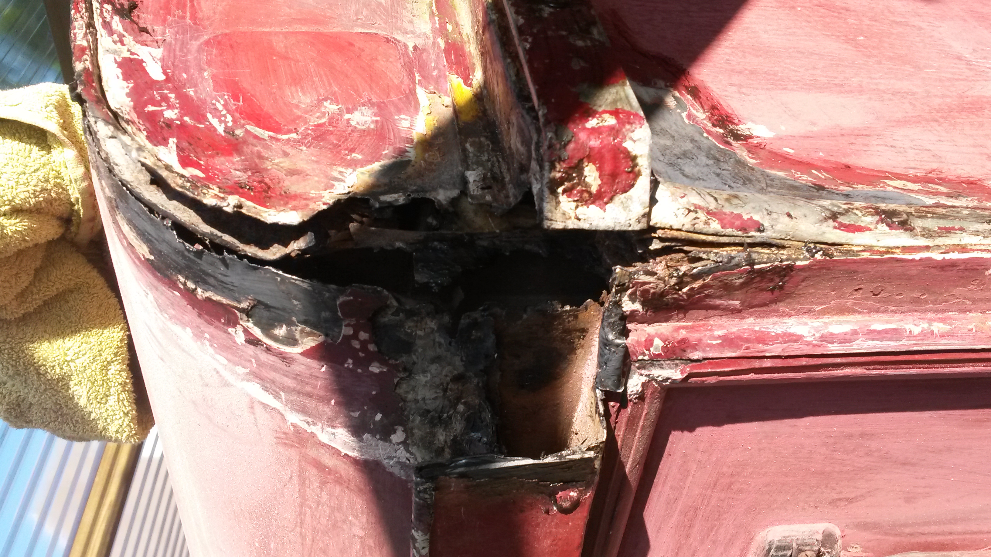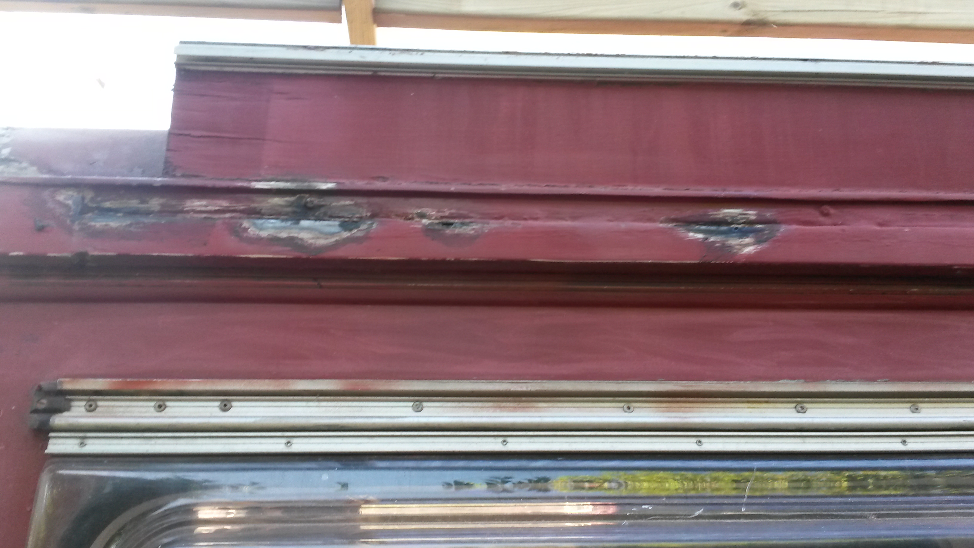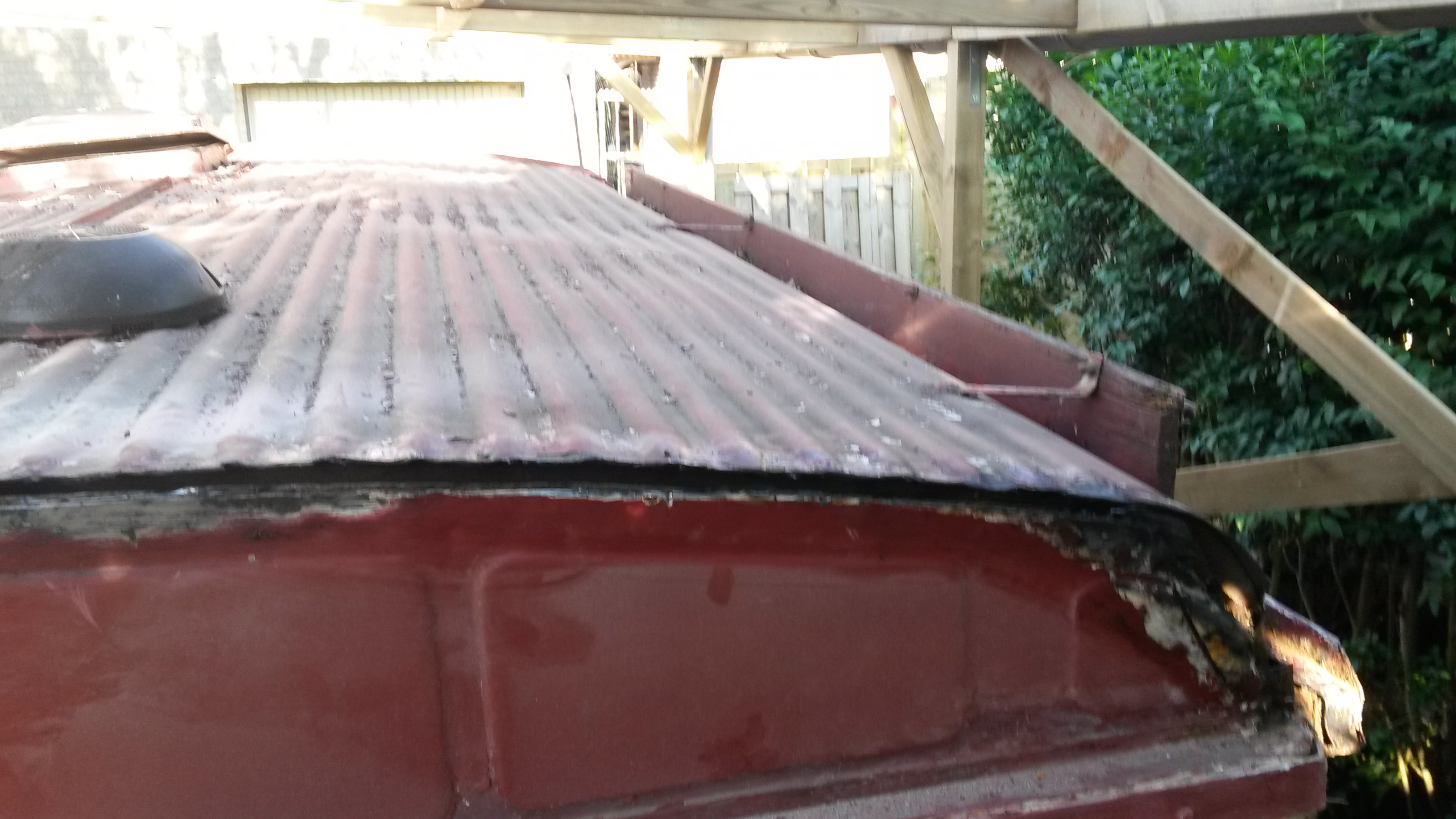 Nadat onze HY vorige maand een nieuwe motor heeft gekregen zijn we nu begonnen met een grote schuurbeurt onder het motto: liever nu grondig werk dan over een jaar of 2 wéér overal roestplekken. Het was nodig ook. Tussen een van de voordeuren en de voorruit is een groot deel compleet weggerot. Ook bij de dakhoeken is de bus zeer slecht. Achterop het dak heb ik een hele sleuf weg moeten slijpen. Was ook totaal rot. Dat verklaard dat binnen de kastjes krom begonnen te trekken.