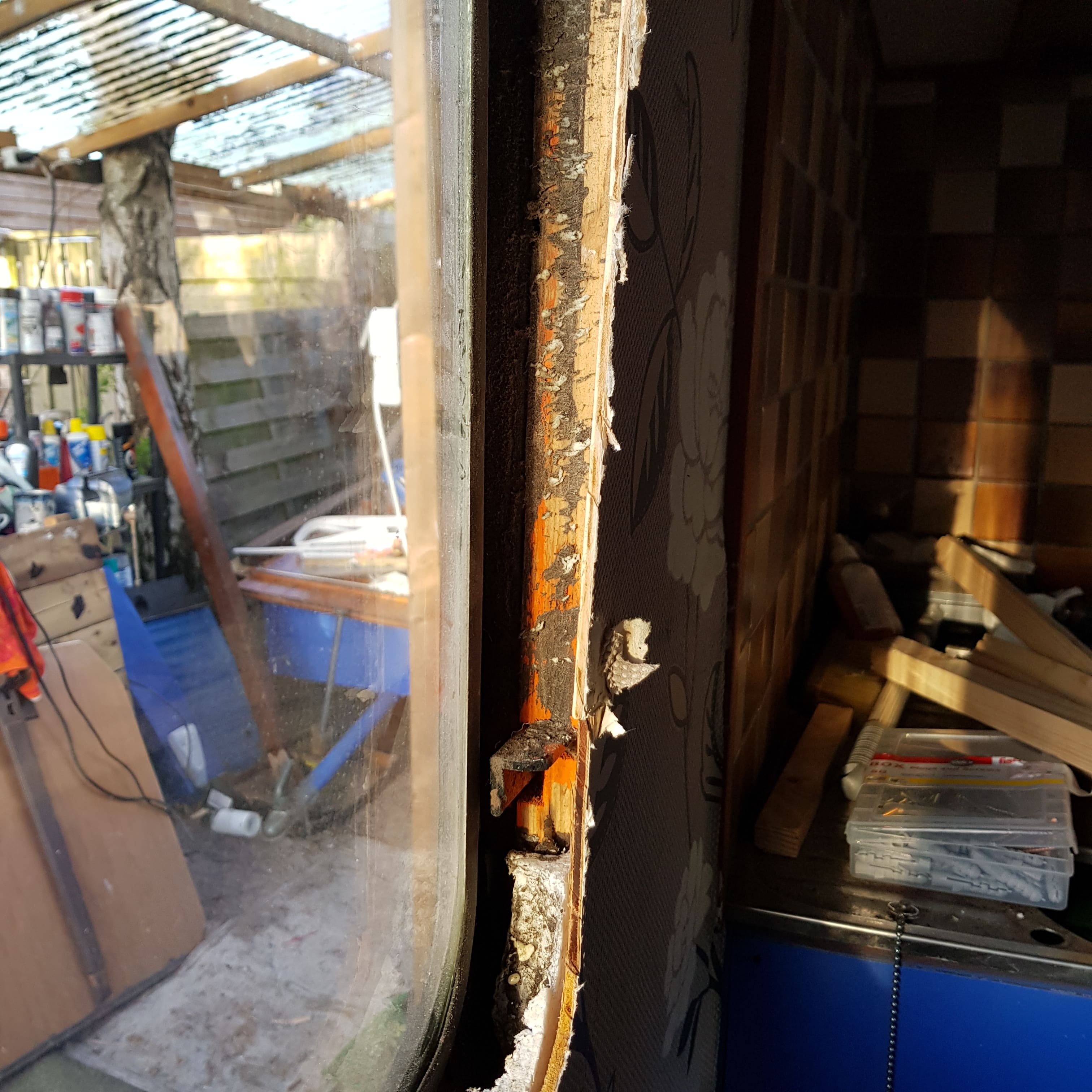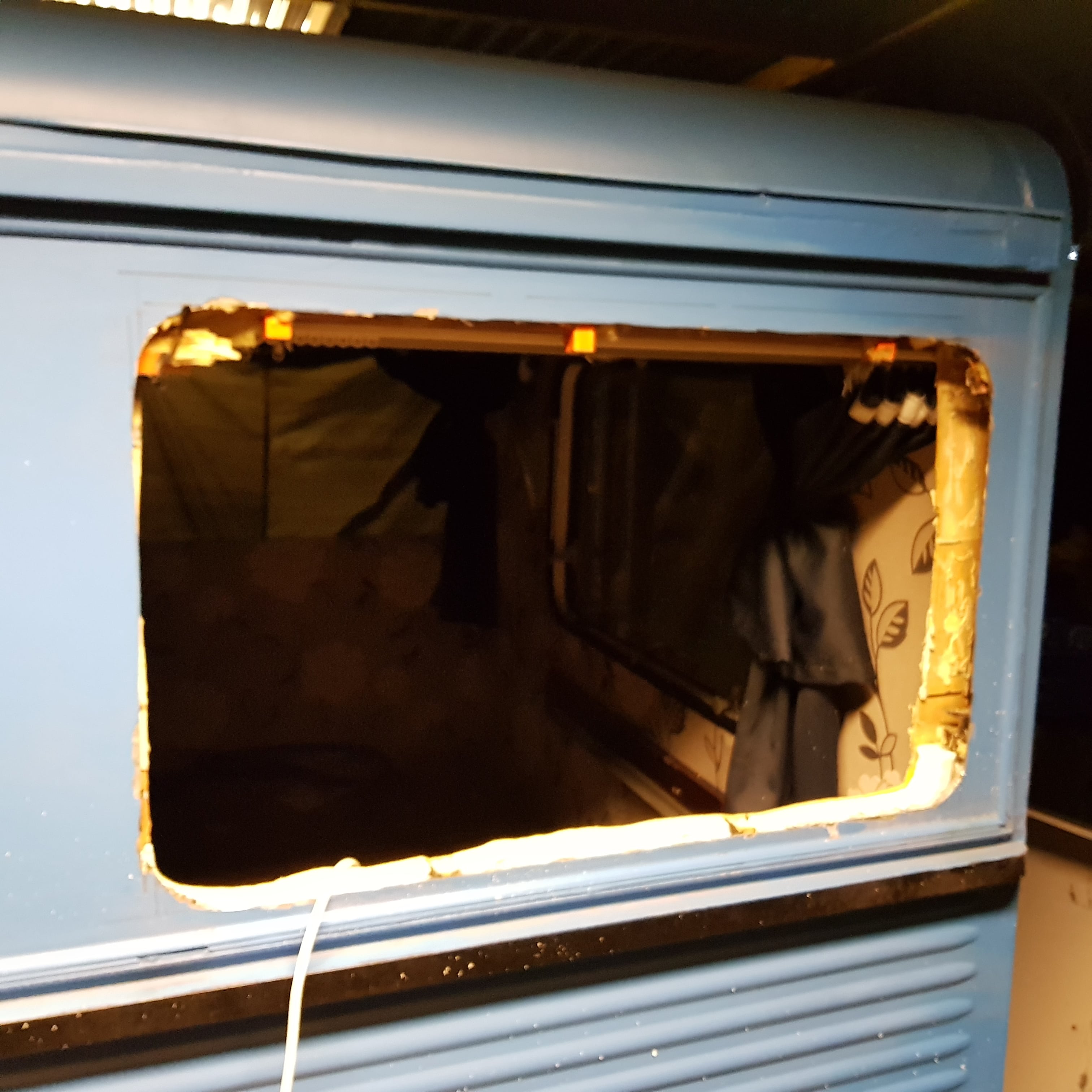 Een van mijn 2 zijramen is gebarsten (net zichtbaar op de foto). Daarnaast vind ik `m vrij smal/klein. Ik heb uitgebreid gezocht naar precies zo'n type raam maar die zijn helaas niet meer te vinden. Daarom komt nu het idee bij me op om een groter raam te monteren / uit te slijpen. Heeft hier iemand ervaring mee? En waar zou ik een stuk glas/plastic? en passend rubber kunnen krijgen? (het raam hoeft dus niet open te kunnen). Ik weet dat ze bij de grotere kamperzaken een uitgebreid assortiment hebben van all inclusive ramen maar dat zoek ik dus niet.